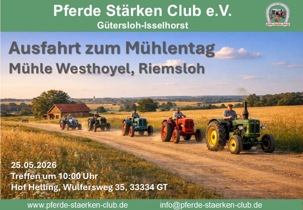 Am Pfingstmontag, 25.05.2026, führt uns Friedrich-Wilhelm erneut über die schönsten Strecken zur Mühle Westhoyel in Riemsloh.