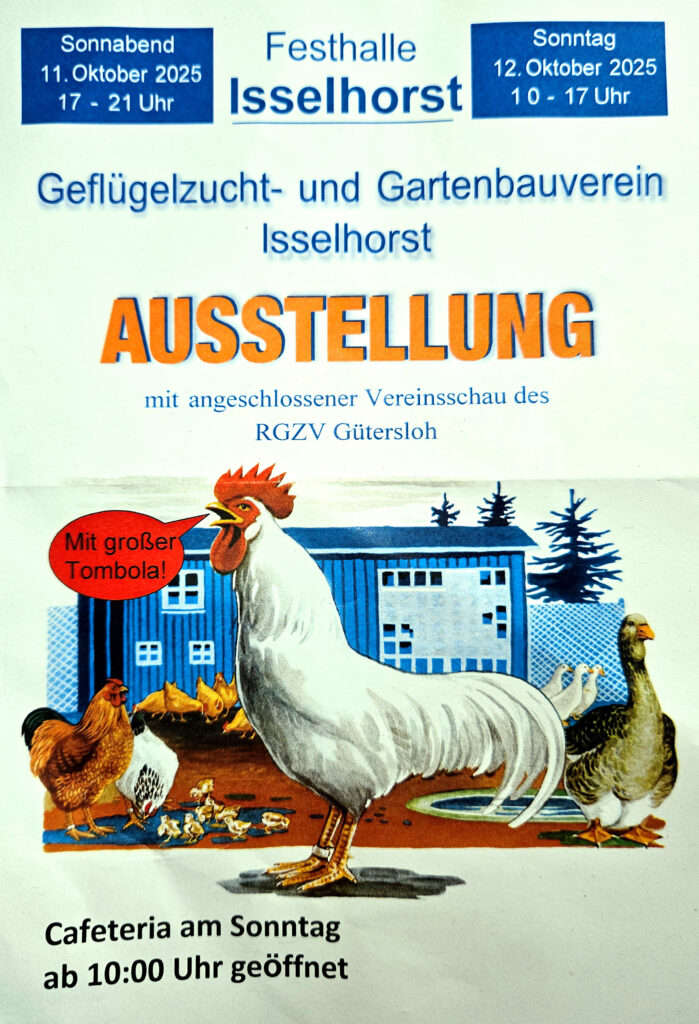 So 12.10.2025 10:00 Uhr | O | Ausstellung Geflügelzucht- und Gartenbauverein Isselhorst |